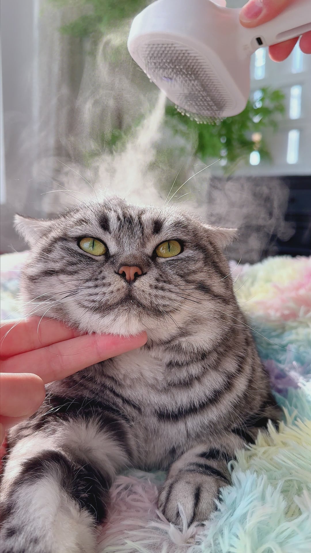 The gentle steam softly loosens fur, giving your cat a warm, relaxing, and spa-like grooming experience